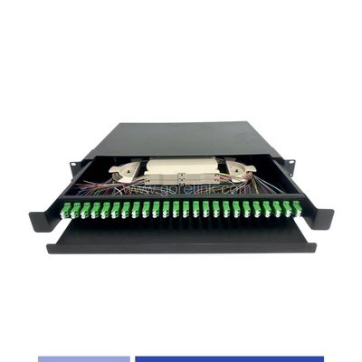 24 Port Fiber Optic patch panel, LC/APC Duplex(48 Fibers),1U,19" Rack Mounted,Sliding rail,Loaded SM LC/APC Duplex adapter |